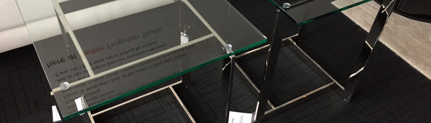 This petite but versatile glass and polished stainless side table is also available as a coffee table and console table, to complete the perfect ensemble.